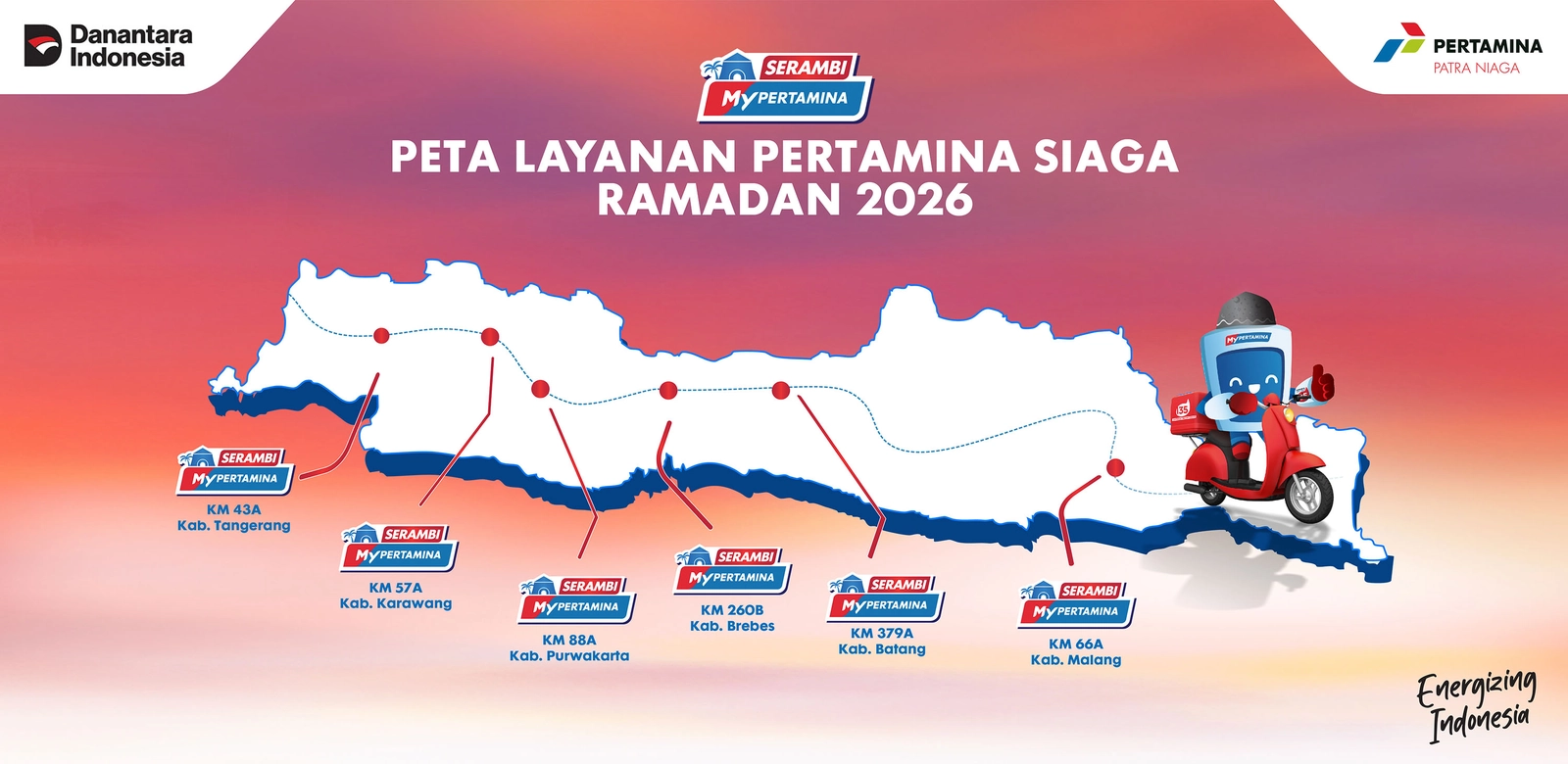 Dengan mengusung tema "Energi untuk Melangkah Penuh Harapan", PT Pertamina Patra Niaga meningkatkan layanan energi dan menyediakan berbagai fasilitas pendukung untuk memastikan kelancaran layanan kebutuhan energi terhadap masyarakat selama periode Ramadan & Idul Fitri 2026 seperti: